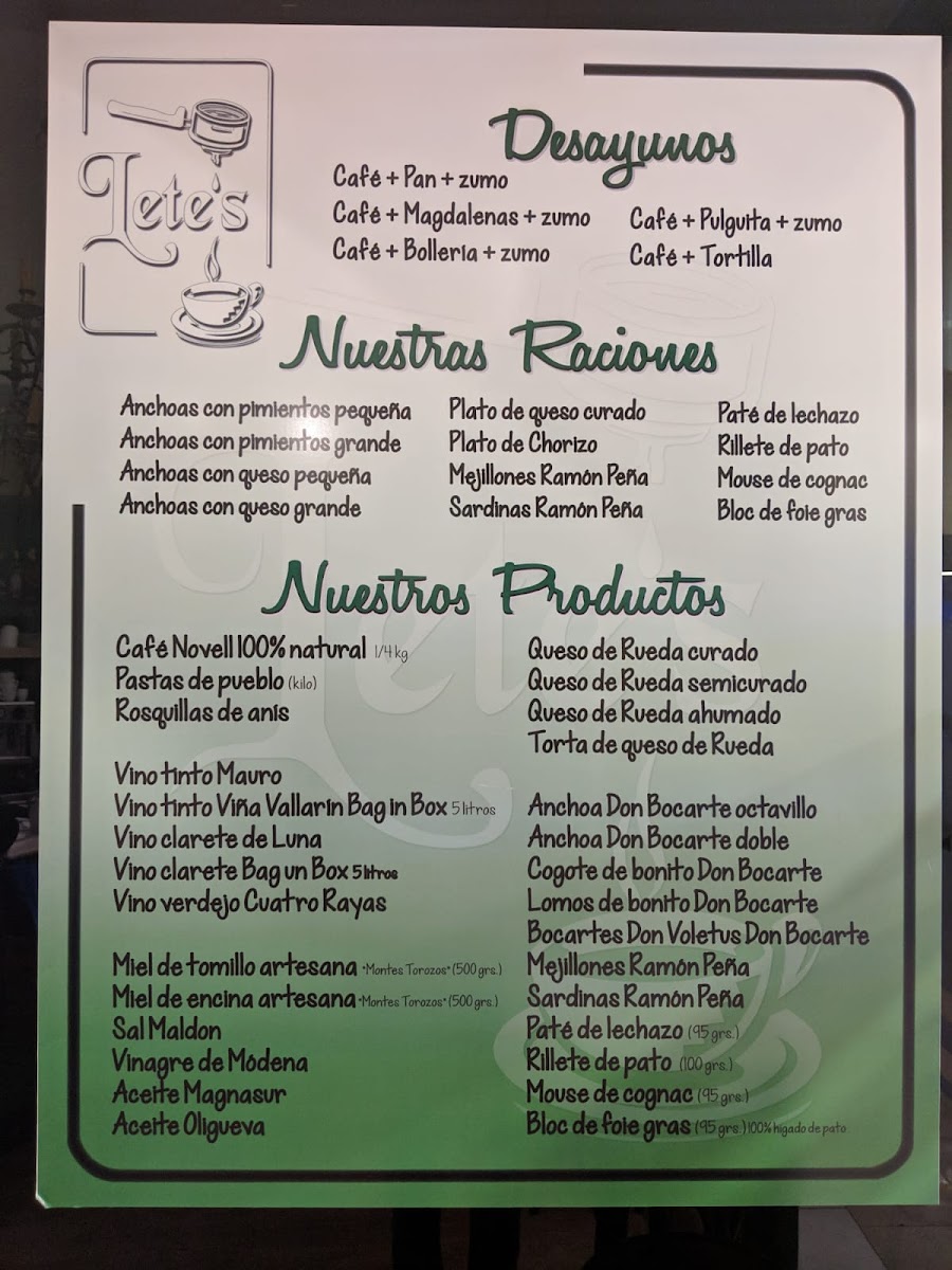 Welcome to Lete's cafetería, a cozy haven located at C. de Santiago, 22 in Valladolid, Spain. This charming café is a favorite among locals for its delightful breakfasts and exceptional coffee. The menu is designed to uplift your mornings, featuring signature dishes like the renowned tortillas crafted by owner Juan Carlos, hailed as some of the best in the city. Customers rave about the friendly service, particularly from Judith, whose efficient and personal touch makes every visit memorable.